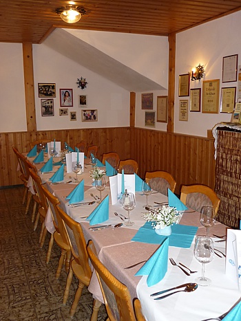 Für Ihre Feste (Taufen, Geburtstage, Firmen- und Weihnachtsfeiern...) sind wir gerne bereit, unseren Saal oder Kellerstüberl für Sie zu öffnen.